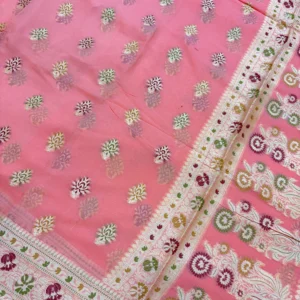 “Gulaabi Meenakari Dreams” – Handloom Khaddi Georgette Saree With Tilfi Meena Work