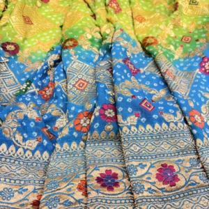 Pure Khaddi Georgette Banarasi Saree with Handwoven Meenakari – Blue to Green Dual-Tone Masterpiece