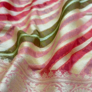 Pure Khaddi Chiffon Saree in Hand-Brushed Multitone Stripes- Pastel & Pink Tones