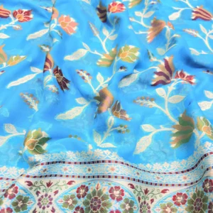 Pure Khaddi Georgette Saree – Aqua Blue Floral Mina Weave