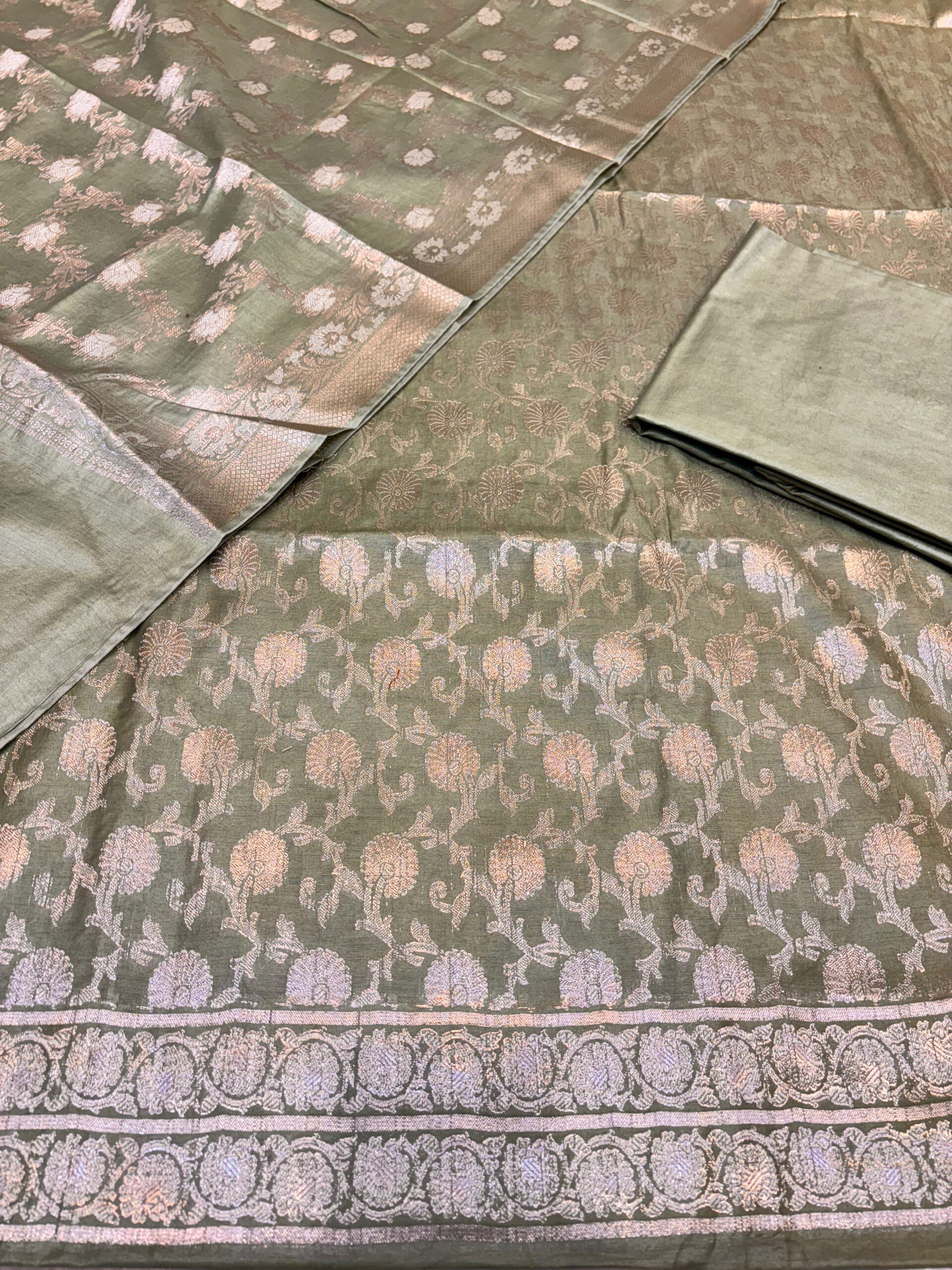Cotton Silk Zari Work Salwar Kameez Fabric With Dupatta