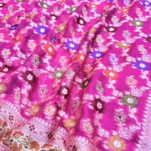 Rani Pink Handloom Khaddi Georgette Saree with Multicolour Floral Meenakari Motifs