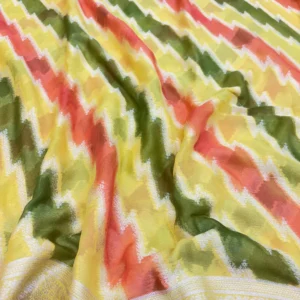 Pure Khaddi Chiffon Saree in Hand-Brushed Multitone Stripes- Yellow, Green & Coral