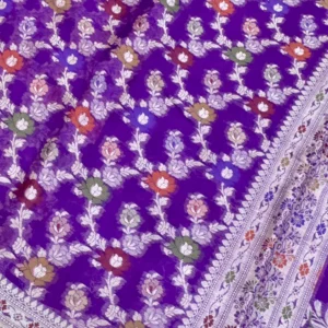 Pure Khaddi Georgette Saree – Purple Meenakari Floral Handloom Weave