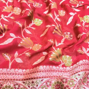 Pure Khaddi Georgette Saree – Scarlet Red Floral Meenakari Weave
